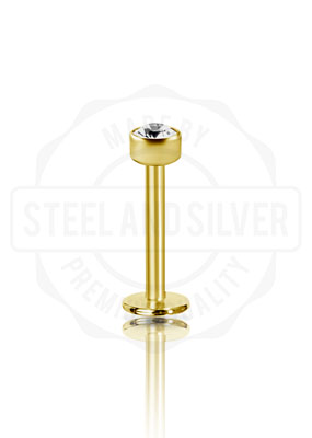 GOLD PVD TITANIUM 18GA LABRET W.PREMIUM ZIRCONIA DISC