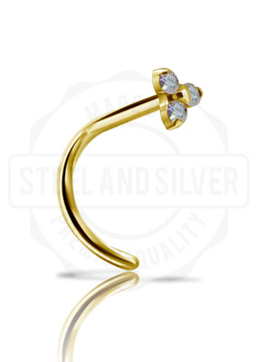 GOLD PVD TITANIUM CURVED TRINITY NOSESTUD SET W. PREMIUM ZIRCONIA