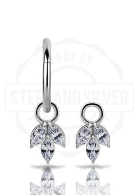 SS316L MARQUISE CLUSTER DANGLE SET W. CUBIC ZIRCONIA