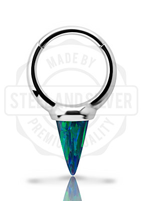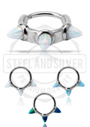 SS316L HINGED CLICKER WITH LONG LAB CREATED OPAL SPIKES