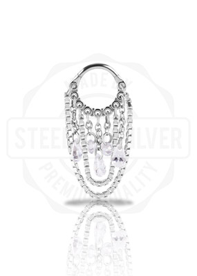 SS316L HINGED RING WITH PEAR SHAPE AND ROUND STONE DANGLES