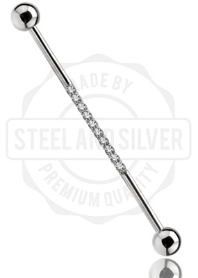 SS316L INDUSTRIAL BARBELLS SET W. CUBIC ZIRCONIA