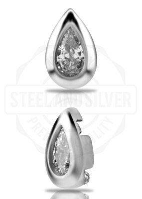 SS316L ONE SIDE INT. MICRO BARBELLS SET W. PEAR SHAPE CUBIC ZIRCONIA