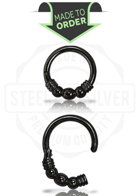 PVD BLACK STEEL HINGED RING (3 BALLS)