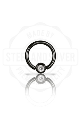 BLACK PVD ANNEALED JEWELLED (SIDE) CLOSURE BALL RING-FIXED