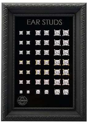 DISPLAY W. 21 PAIRS EAR STUDS SET W. PREMIUM ZIRCONIA -13X18CM