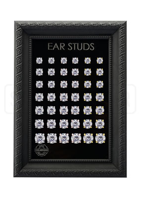 DISPLAY W. 21 PAIRS EAR STUDS SET W. ROUND PREMIUM ZIRCONIA
