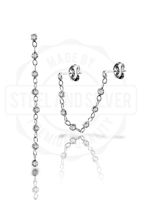 SS316L DOUBLE CONNECTED EARSTUDS SET W. CUBIC ZIRCONIA (BY PCS)