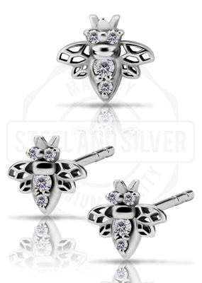SS316L BEE EARSTUDS SET W. CUBIC ZIRCONIA