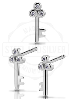 SS316L KEY EARSTUDS SET W. CUBIC ZIRCONIA