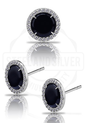 SS316L BLACK 6MM AGATE EARSTUDS W. HALO PAVE FRAME