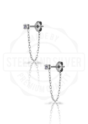 SS316L EARSTUDS SET W. 2MM ROUND PREMIUM ZIRCONIA (CHAIN 3.2CM)