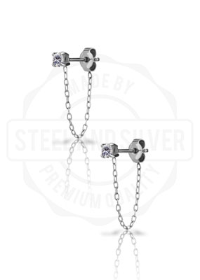 SS316L EARSTUDS SET W. 3MM ROUND PREMIUM ZIRCONIA (CHAIN 3.2CM)