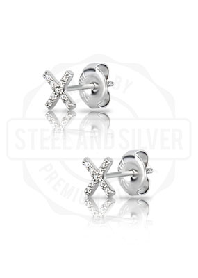 SS316L "X" EARSTUDS SET W. CUBIC ZIRCONIA