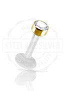 BIOPLAST® LABRET WITH 18K GOLD ATTACHMENT SET W. PREMIUM ZIRCONIA