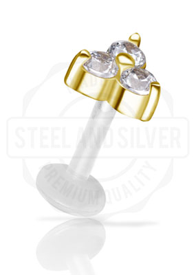 BIOPLAST® LABRET WITH 18K GOLD TRINITY ATTACHMENT SET W. PREMIUM ZIRCONIA