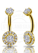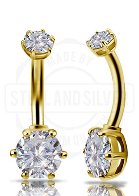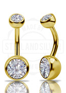 18K GOLD INT. THREADED NAVEL BANANA SET W. LAB CREATED DIAMONDS