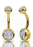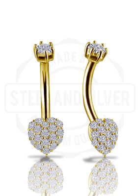 18K GOLD INTERNAL HEART NAVEL BANANA SET W. LAB CREATED DIAMONDS