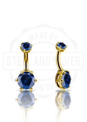 18K GOLD INT. THREADED NAVEL BANANA SET W. LAB CREATED GEMSTONE