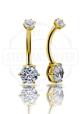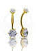 18K GOLD INT. THREADED NAVEL BANANA SET W. PREMIUM ZIRCONIA (3+5MM)