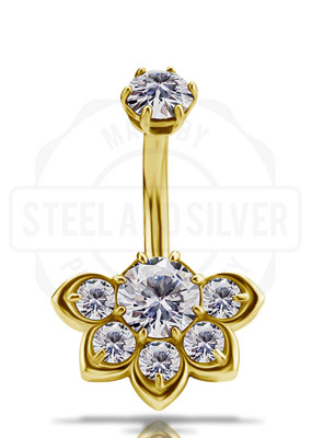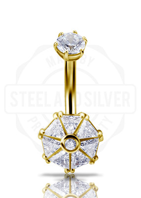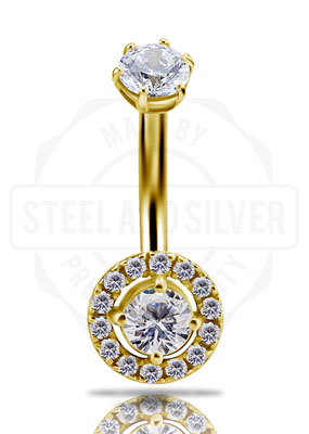 18K GOLD INTERNAL NAVEL BANANA SET WITH 100 FACETTS PREMIUM ZIRCONIA