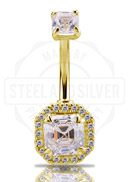18K GOLD INTERNAL HEART NAVEL BANANA SET W. PREMIUM ZIRCONIA