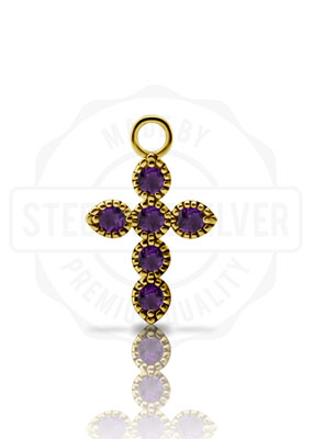 18K GOLD CROSS CHARM SET WITH GENUINE DARK AMETHYST
