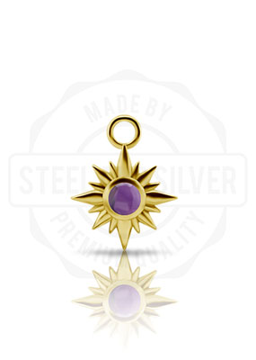 18K GOLD CHARM SET WITH GENUINE DARK AMETHYST (CABOCHON)