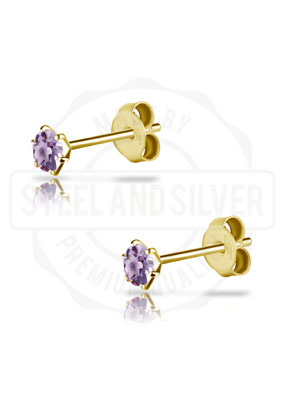 18K GOLD EAR STUD SET WITH GENUINE PINK AMETHYST (3MM)