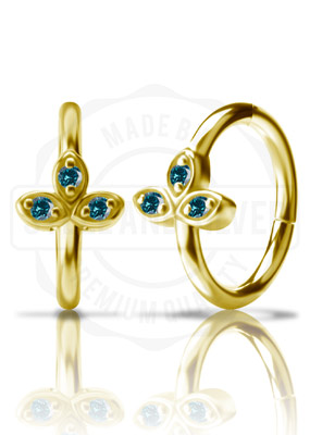 18K GOLD HINGED NOSE RING SET WITH LAB CREATED DIAMONDS