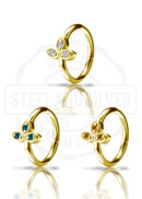 18K GOLD HINGED NOSE RING SET WITH LAB CREATED DIAMONDS