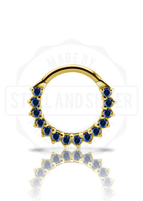 18K GOLD HINGED SEPTUM & DAITH CLICKER SET W. LAB CREATED GEMSTONE