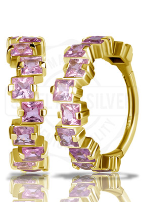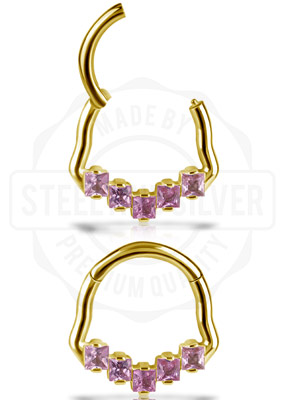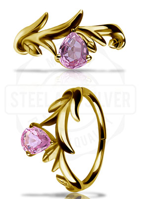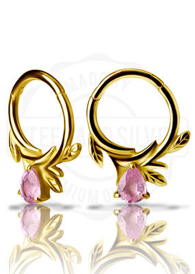 18K GOLD HINGED DAITH CLICKER SET W. PEAR SHAPE GENUINE PINK SAPPHIRE
