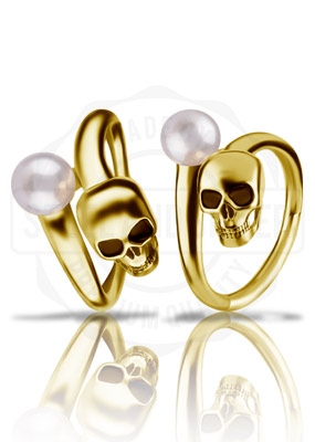 18K GOLD HINGED SEGMENT SKULL CLICKER W. FRESH WATER PEARL