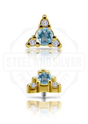 18K GOLD INTERNAL ATTACHMENT SET W. GENUINE BLUE TOPAZ AND LAB CREATED DIAMONDS