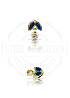 18K GOLD INTERNAL ATTACHMENT W. DANGLE SET W. LAB CREATED GEMSTONE