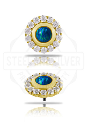 18K GOLD INTERNAL ATT. SET W. PREMIUM ZIRCONIA AND LAB CREATED OPAL