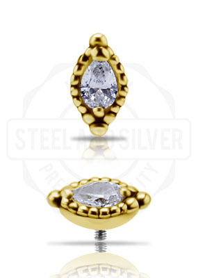18K GOLD INTERNAL ATTACHMENT SET W. PEAR SHAPE PREMIUM ZIRCONIA
