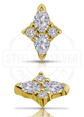 18K GOLD INTERNAL ATTACHMENT SET W. PEAR SHAPE PREMIUM ZIRCONIA