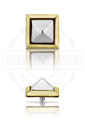 18K GOLD 2 TONE INTERNALLY THREADED PYRAMIDE SHAPE ATTACHEMENT