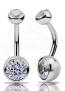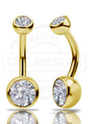 18K GOLD INT. THREADED BELLY BANANA SET W. LAB CREATED DIAMONDS