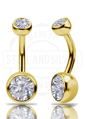 18K GOLD INT. THREADED BELLY BANANA SET W. LAB CREATED DIAMONDS