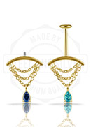 18K GOLD VERTICAL HELIX ATTACHMENT WITH CHAIN AND DANGLE LAB CREATED GEMSTONE