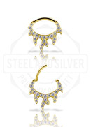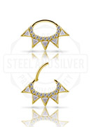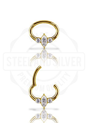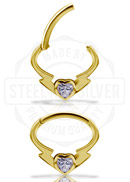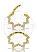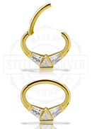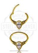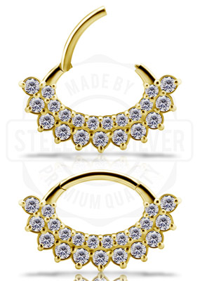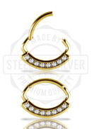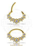 18K GOLD HINGED OVAL DAITH CLICKER SET W. PREMIUM ZIRCONIA