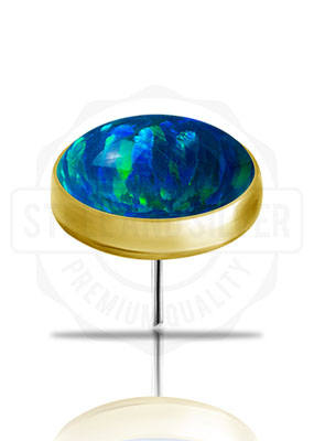 18K GOLD THREADLESS ATTACHMENT W. LAB CREATED OPAL (5MM DISC)