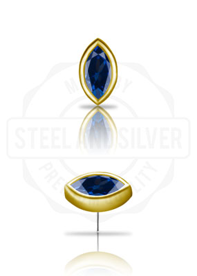 18K GOLD THREADLESS ATTACHEMENT BEZEL SET W. MARQUISE LAB CREATED GEMSTONE