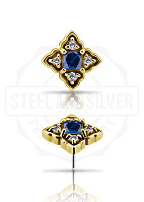 18K GOLD THREADLESS ATTACHMENT SET W. PRINCESS CUT LAB CREATED GEMSTONE