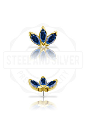 18K GOLD THREADLESS ATTACHMENT SET W. MARQUISE LAB CREATED GEMSTONE