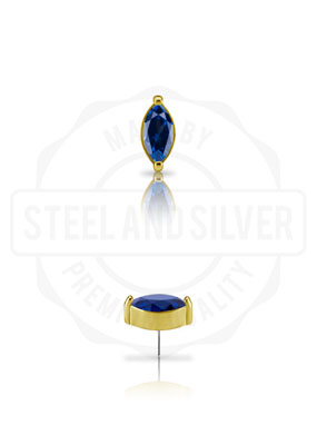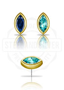 18K GOLD THREADLESS ATTACHMENT SET W. MARQUISE LAB CREATED GEMSTONE