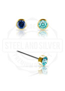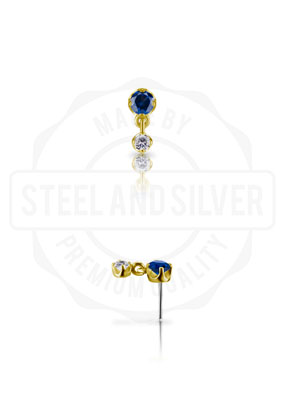18K GOLD THREADLESS ATTACHMENT W. DANGLE SET W. LAB CREATED GEMSTONE